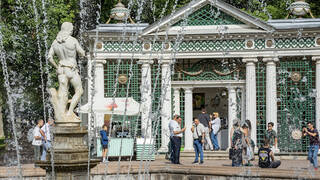Какой парк известен своими мраморными статуями и гранитной Кофейней Петра I?