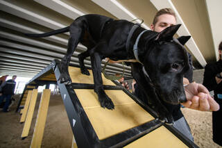 Какой возраст был у самой взрослой собаки-стаффордшира Лидж Брендит на момент фиксации рекорда?